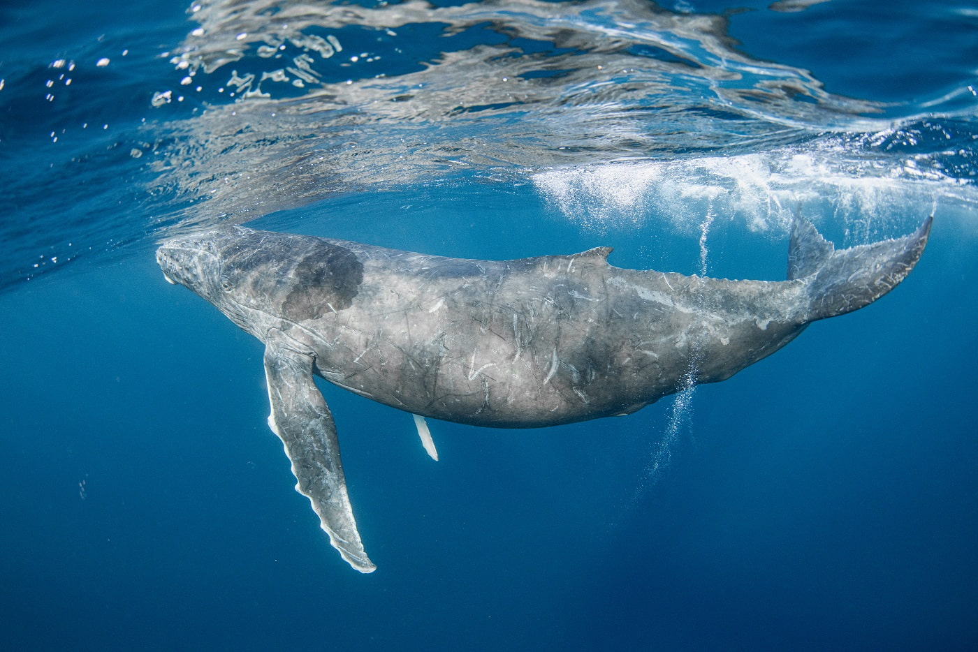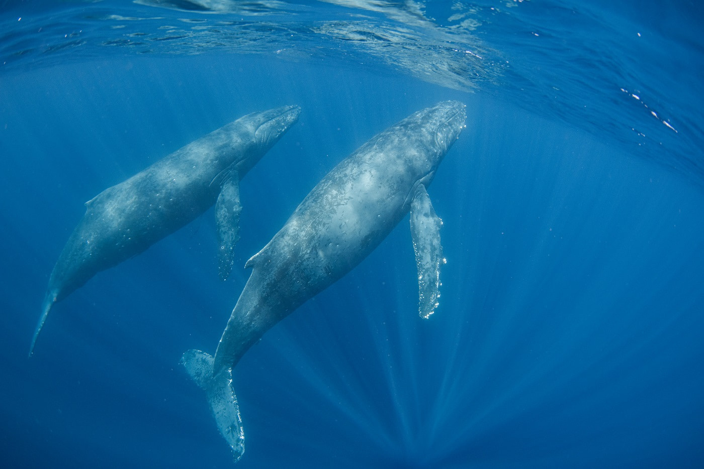 先頭のメスを追っかけて二頭のオスがヒートランしてました。(たぶん)水面でもブリーチしたり手をバタバタさせてアクションして凄かったです。