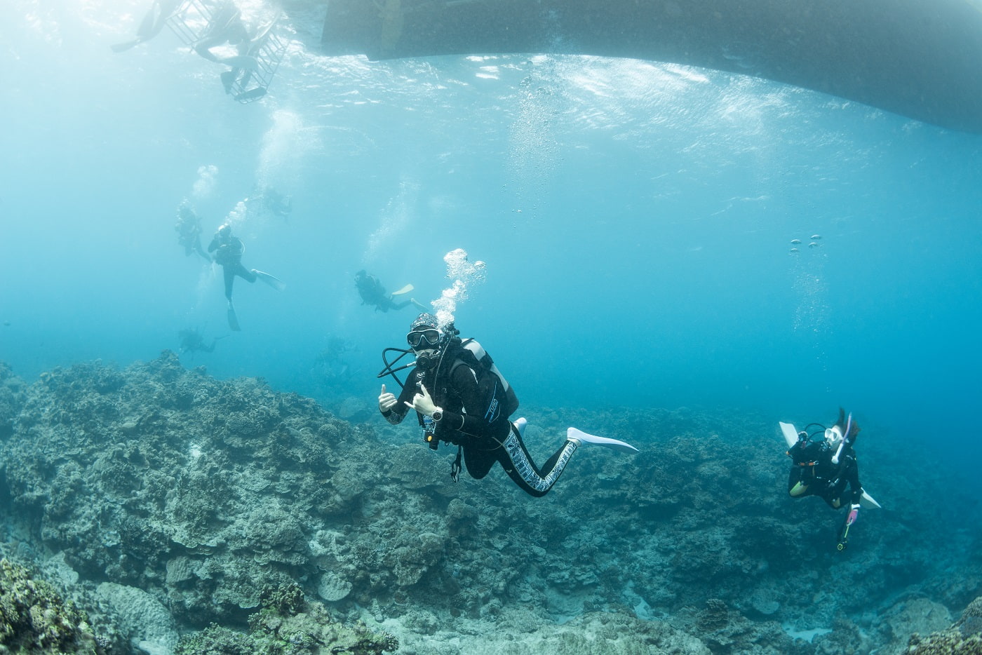 Guests diving in the Kerama Islands