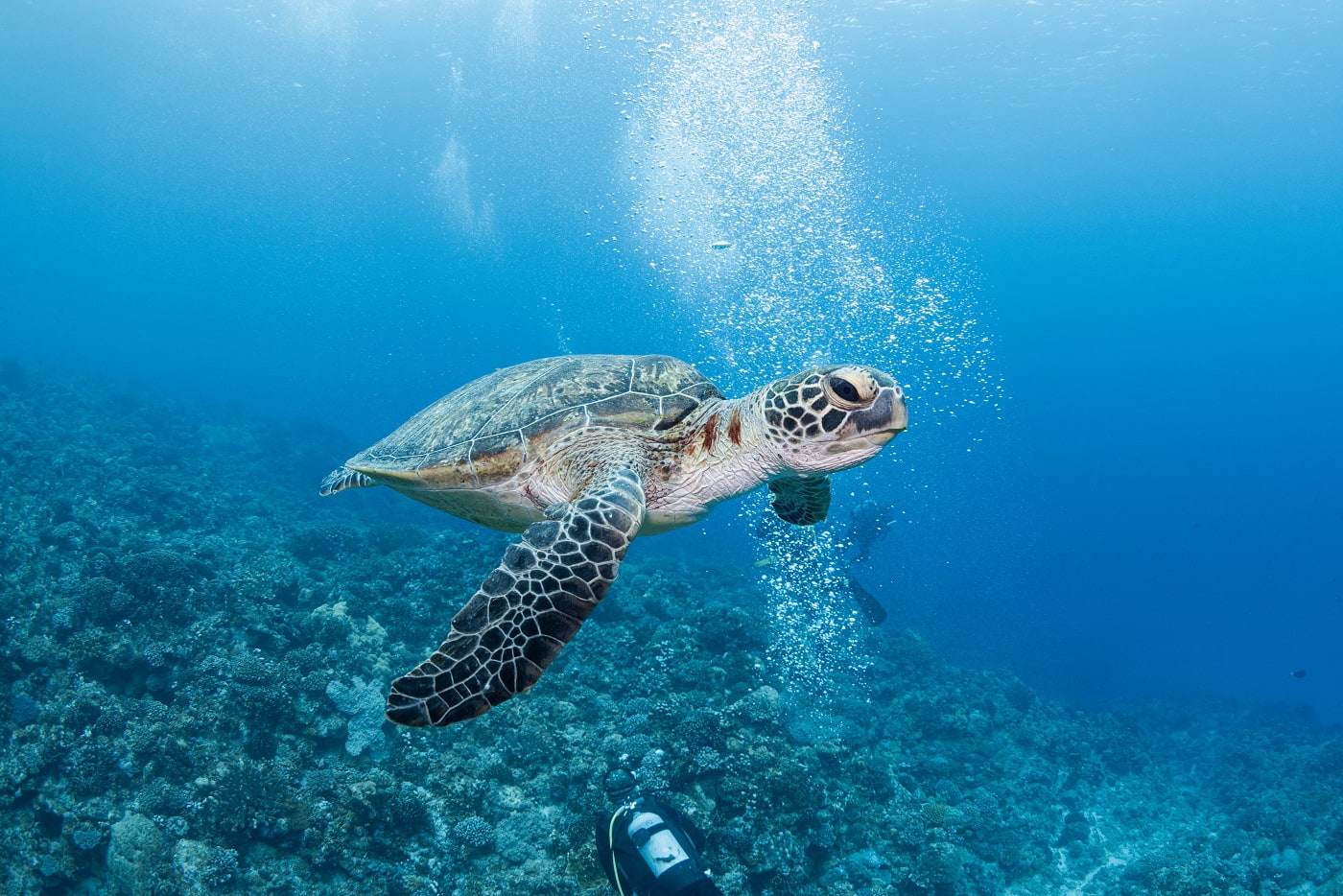 Underwater, we saw many sea turtles, and the visibility was also very good.